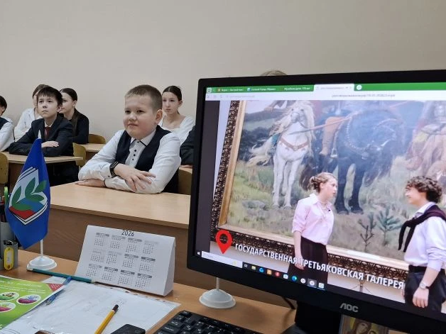 Сегодня, 19 января 2026 года, на классном часе «Разговоры о важном» ученики 6Е класса окунулись в мир искусства и истории русской живописи. Они узнали о знаменитой Третьяковской галерее, её основателе Павле Третьякове и значении коллекции картин для культурного наследия нашей страны.